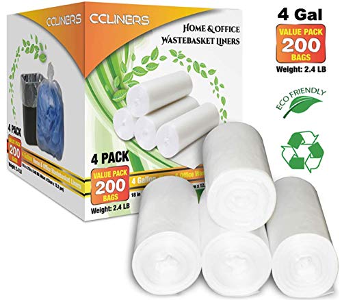 ★ MEASUREMENT: L x W = 18 inch x 21 inch. Fits up to 4 Gallon Trash Cans or waste basket bin. This 4 gallon trash bag is THIN and can be use for MEDIUM-LIGHT DUTY offices, kitchens, restroom, bathroom and hotel trash.