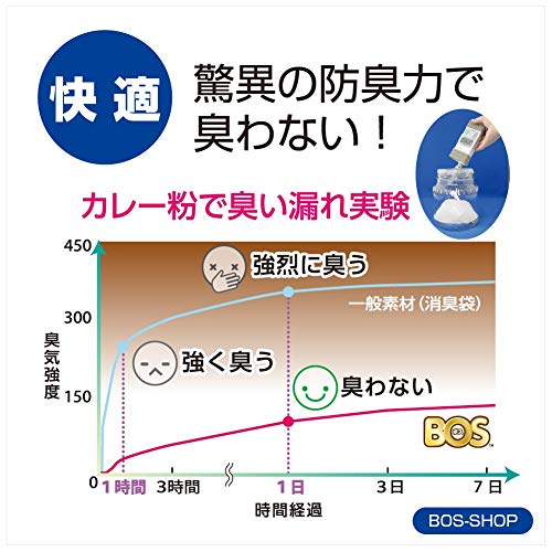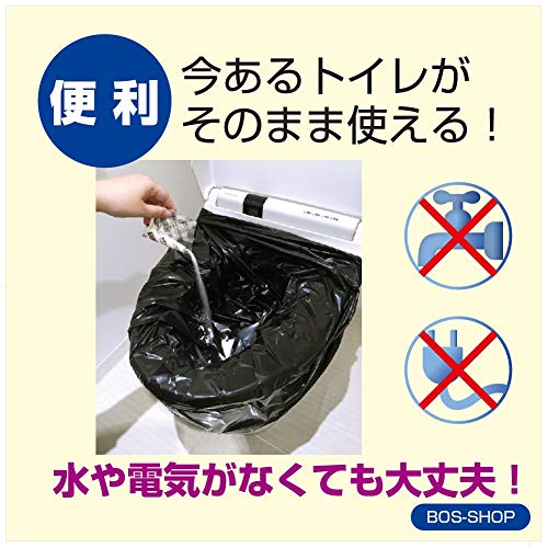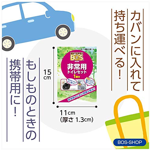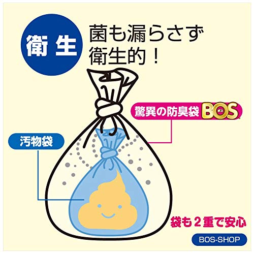 Our "BOS-SHOP" is a manufacturer who manufactures sophisticated bags. BOS (boss) was developed to prevent the smell of poo. BOS was born after a long development period. The deodorizing power is overwhelming! I will recommend with confidence. BOS born from medical development. The smell of poop, people feel most sensitive. BOS is a material with astonishing deodorizing power that puts poop and does not feel the smell almost even if you put your nose close after leaving it for a while. The BOS emergency toilet is the only mobile toilet that "can use immediately and does not smell". "Amazing deodorant material BOS" was set, it is the only mobile toilet. set content · Amazing deodorant bag BOS 1 sheet · 1 coagulant agent (coagulate the moisture) 2 waste bags (1 for toilet cover, 1 for excretion) · 1 instruction manual ※ The colors of waste bags may be blue.[Comfort and hygiene] Even if it can not be discarded, it does not smell comfortably! It is hygienic without leakage of bacteria.