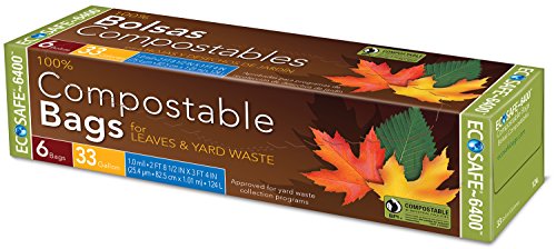 Presto Eco Safe Garbage Bags 33 Gallon 1.0 mil 6 Count Green. Fortified with natural minerals, Eco Safe 6400 bags offer superior value for price and performance. Eco Safe 6400 compostable bags are certified compostable by the Bio gradable Products Institute and US Composting Council. These bags meet ASTM D6400 Standard Specifications for compostable plastics and are specifically engineered to quickly break down in 10 to 45 days and fully compost in less than 6 months when disposed of in a commercial composting facility. The bags are ideal for municipal curb side yard waste collection programs. They also support pre and post consumer food waste diversion programs. All Eco Safe 6400 compostable bags carry the United States Composting Council/Biodegradable Products Institute certification symbol. This symbol shows that the product has been tested in an approved third party laboratory for conformance to the ASTM Standards item #GKL042480-7.Our green tinted compost bags are BPI certified compostable certification # 10528542