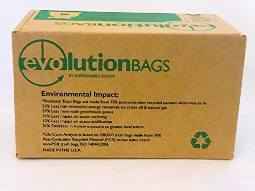 Sustainable white, super stretch, tall kitchen trash bag 24"x32", .85mil, 50 bags per box. Perforated bags on rolls for easy separation. Made with 70% (third-party certified) Post-Consumer Recycled (PCR) LLDPE. The exclusive closed-loop recycling process allows our trash bags to be manufactured at the highest quality. Exceeds EPA Procurement Guidelines by 700%, UL ECOLOGO certified and counts toward LEED points. Proud members of 1% For The Planet. Our packaging is made from at least 40% of PCR material too! Made in the U.S.A.White, 13 gallon, super stretch, tall kitchen trash bag, 24"x32"(50 bags)