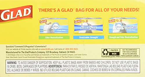 TALL GARBAGE BAG: Prevent rips and tears with Glad's unique diamond design allowing these tall trash bags to stretch at the top while reinforced bands contain bulk through the middle