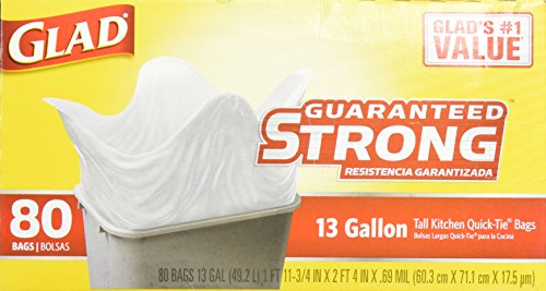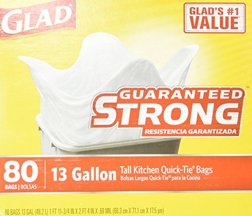 GARBAGE CAN LINER: The Glad 13 gallon trash can liner with reinforced strength can haul the heaviest loads while protecting against leaks keeping your garbage can and house clean