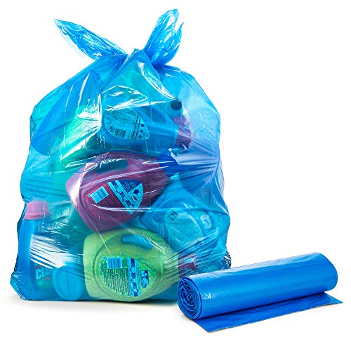 Are you tired of fussing around with those flimsy trash bags which easily puncture and rip only to leave behind a mess? If so, these Blue Recycling trash bags by Tasker are the perfect solution for you! They're big, they're strong and they can be used both indoors in the kitchen or garage and outdoors for organizing, cleaning up or landscaping. Use them to rake up leaves or gather branches in the yard or in large capacity trash cans. In order to ensure they can withstand even the toughest jobs around the home, our 55 gallon Blue Recycling trash bags are made in the USA out of a premium quality 1.3 mil strength equivalent thick Blue Recycling r plastic. What more could you ask for from a heavy duty trash bag? -50 Count Box -Large 55 Gallon Blue Recycling Trash Bags -36" Wide by 55" Tall -Made in the USA -Heavy Duty -Strong and Thick Plastic -Great for Indoor or Outdoor Use Go ahead and toss out those useless thin trash bags because it is finally time to replace them with these durable Blue Recycling garbage bags by Tasker. Click 'Add to Cart' to order your own box of Tasker's plastic trash bags today!Each box includes a total of 50 Blue Recycling trash bags that are individually folded