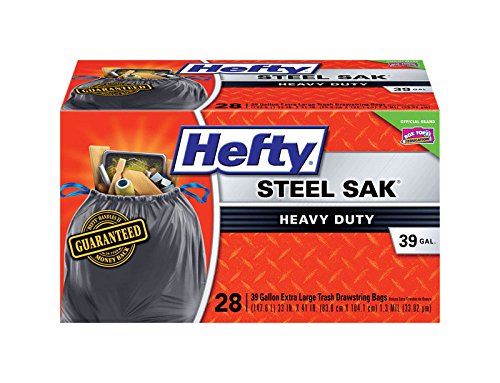 You'll find many uses for these versatile, heavy duty trash bags. Try Hefty Extra Strong Multipurpose Trash Bags to tackle post-party clean-up, store seasonal items, collect donations, or to clean up your basement, garage and yard. Constructed from a heavy-duty plastic that is durable enough to accommodate even tough jobs and is equipped with built-in drawstrings for closure. 28 count 39 gallon Color: Black 33" x 41" 1.3 Mil Ideal for post-party clean-up, store seasonal items, collect donations, or to clean up your basement, garage and yard Extra large capacity Drawstring closure.28 count