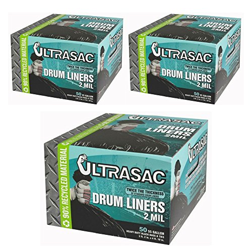 The Ultrasac Drum Liner Trash Bags are resistant to tears and punctures to secure heavy loads. These bags are great for industrial use and fit commercial-sized drums. They are environmentally friendly and manufactured from 90% recycled materials. Made of 2-mil thick material, the 1-at-a-time dispensing design provides easy access.50 count of 55-gallon drum line trash bags